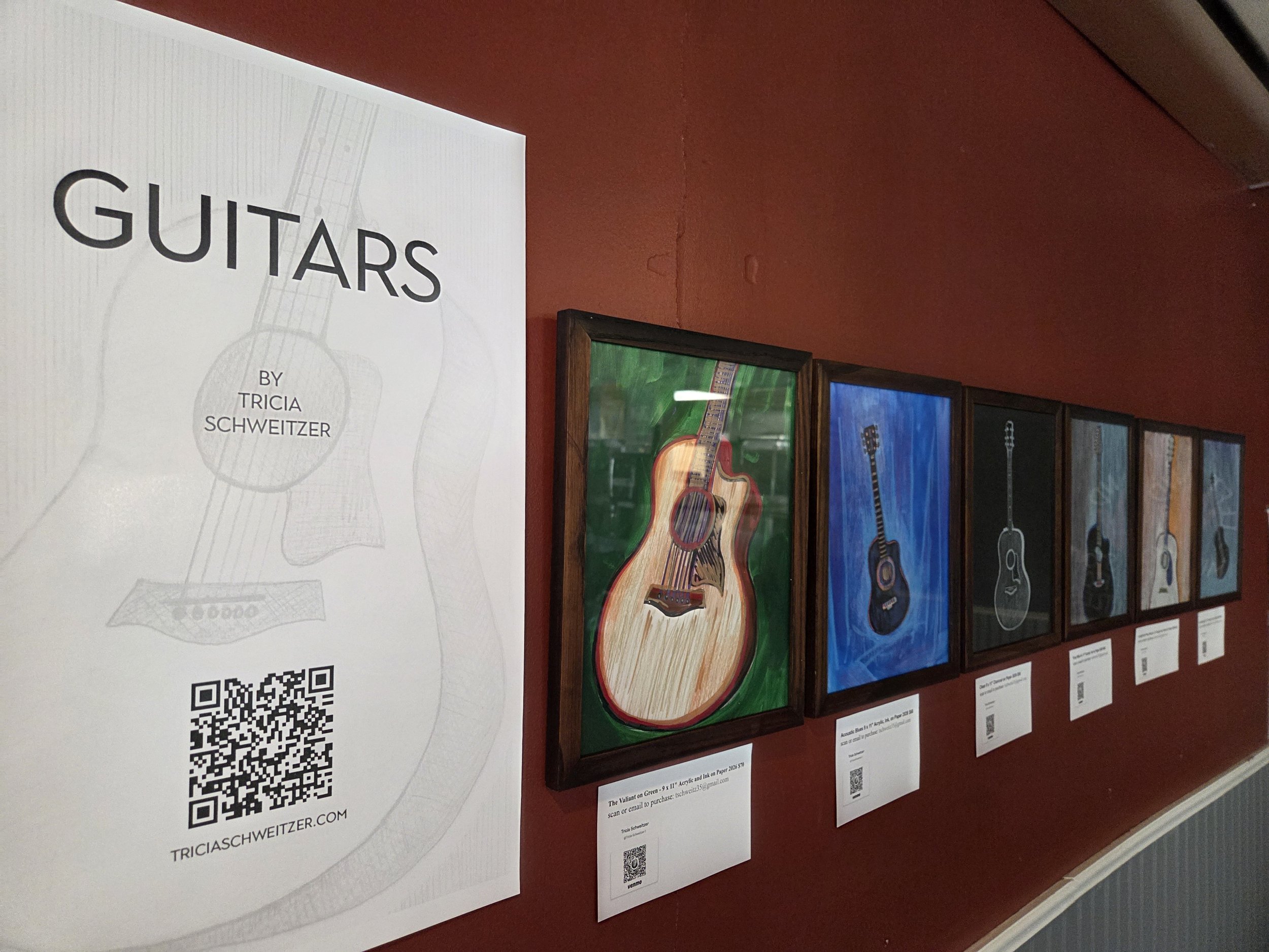 Blonde Acoustic on Blue 17 x 25" Acrylic, Ink, on Paper 2026 $60